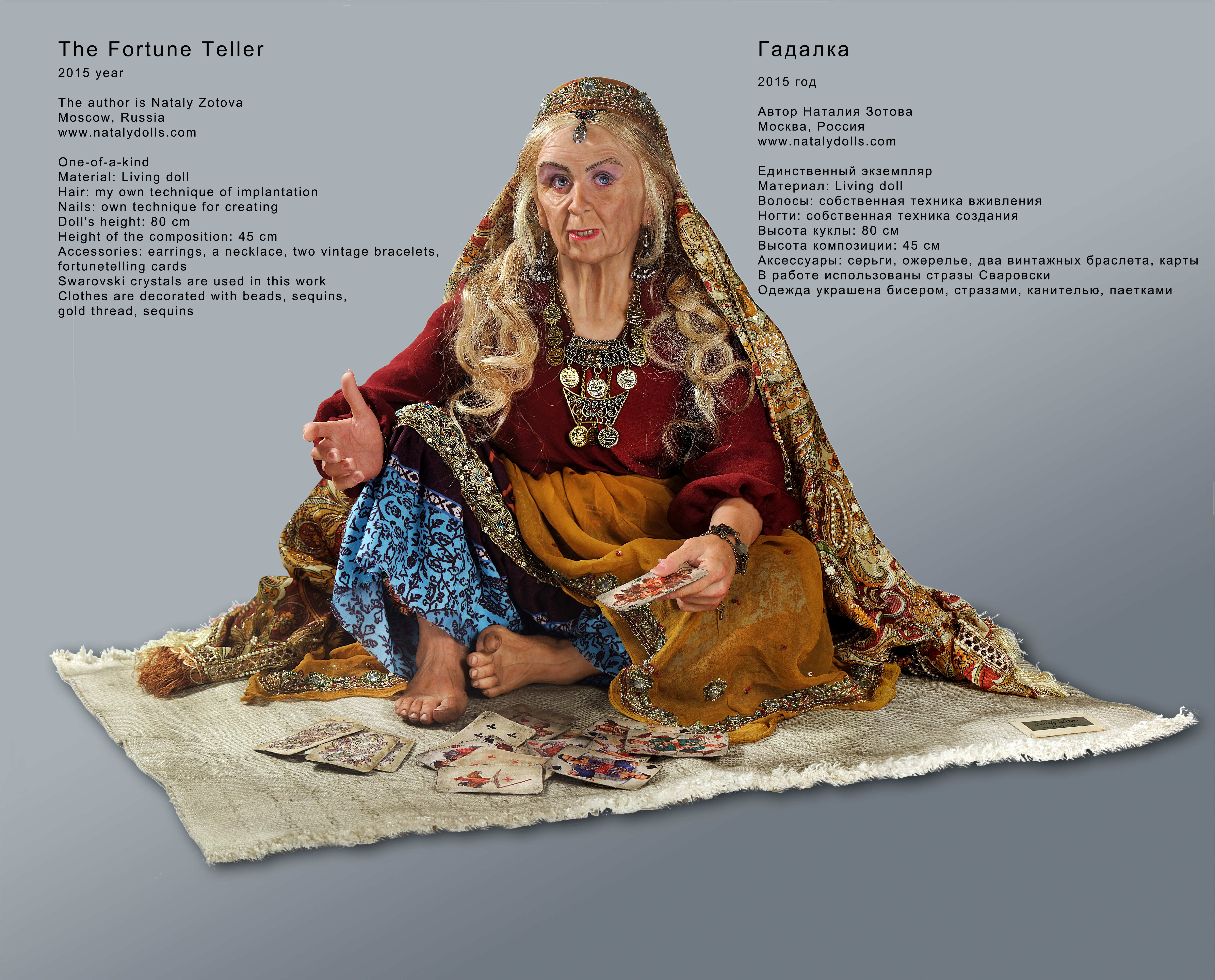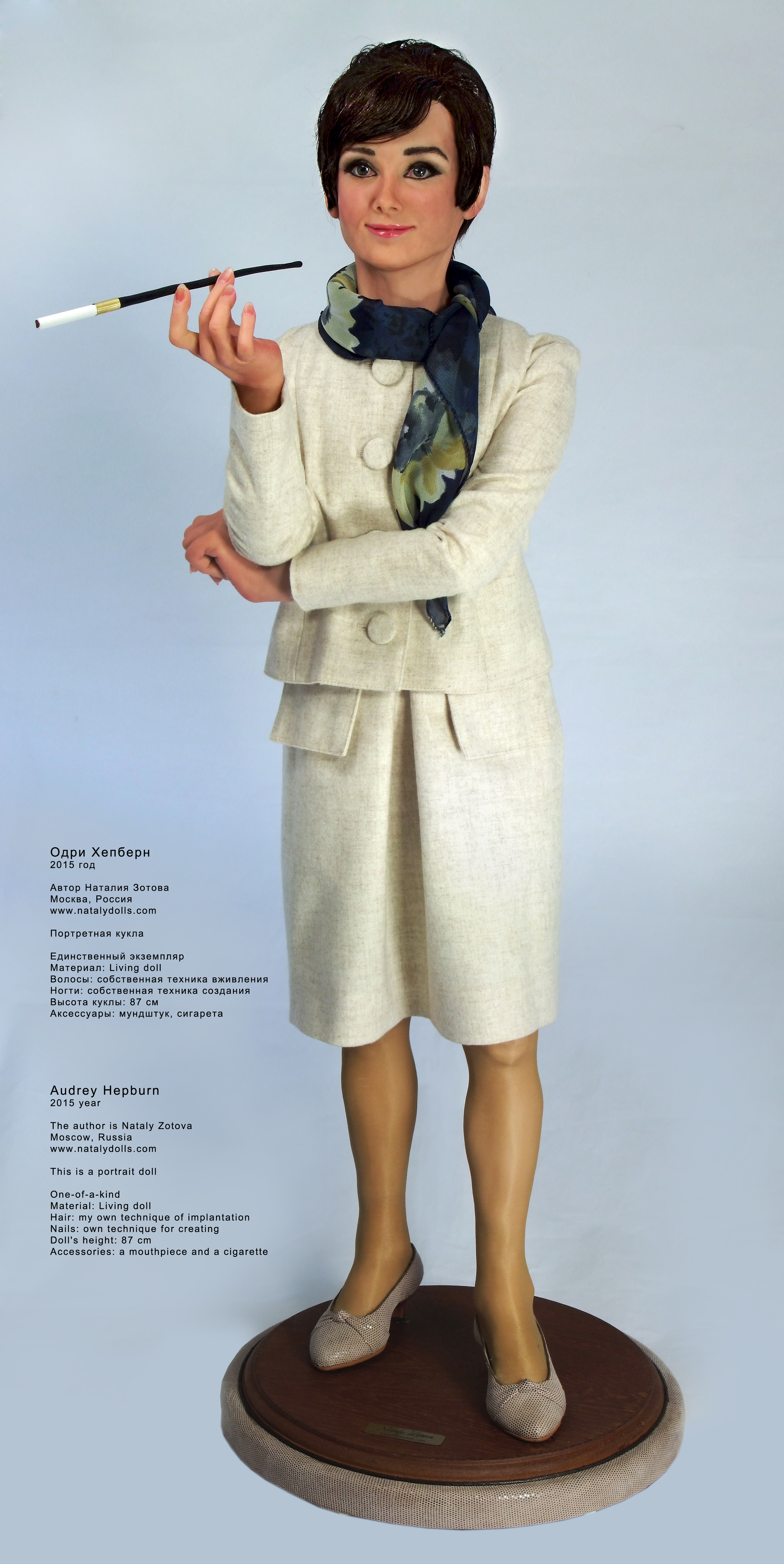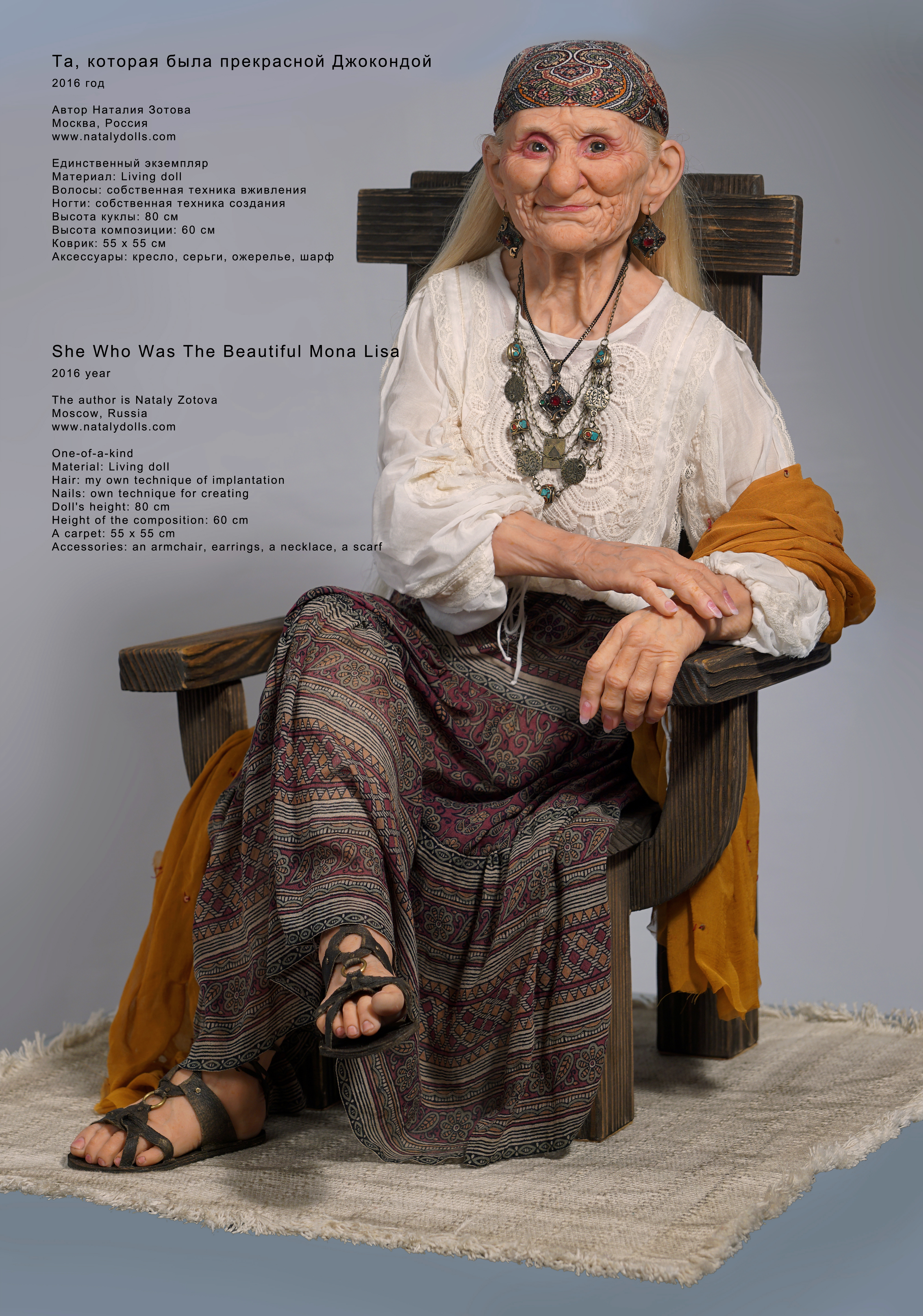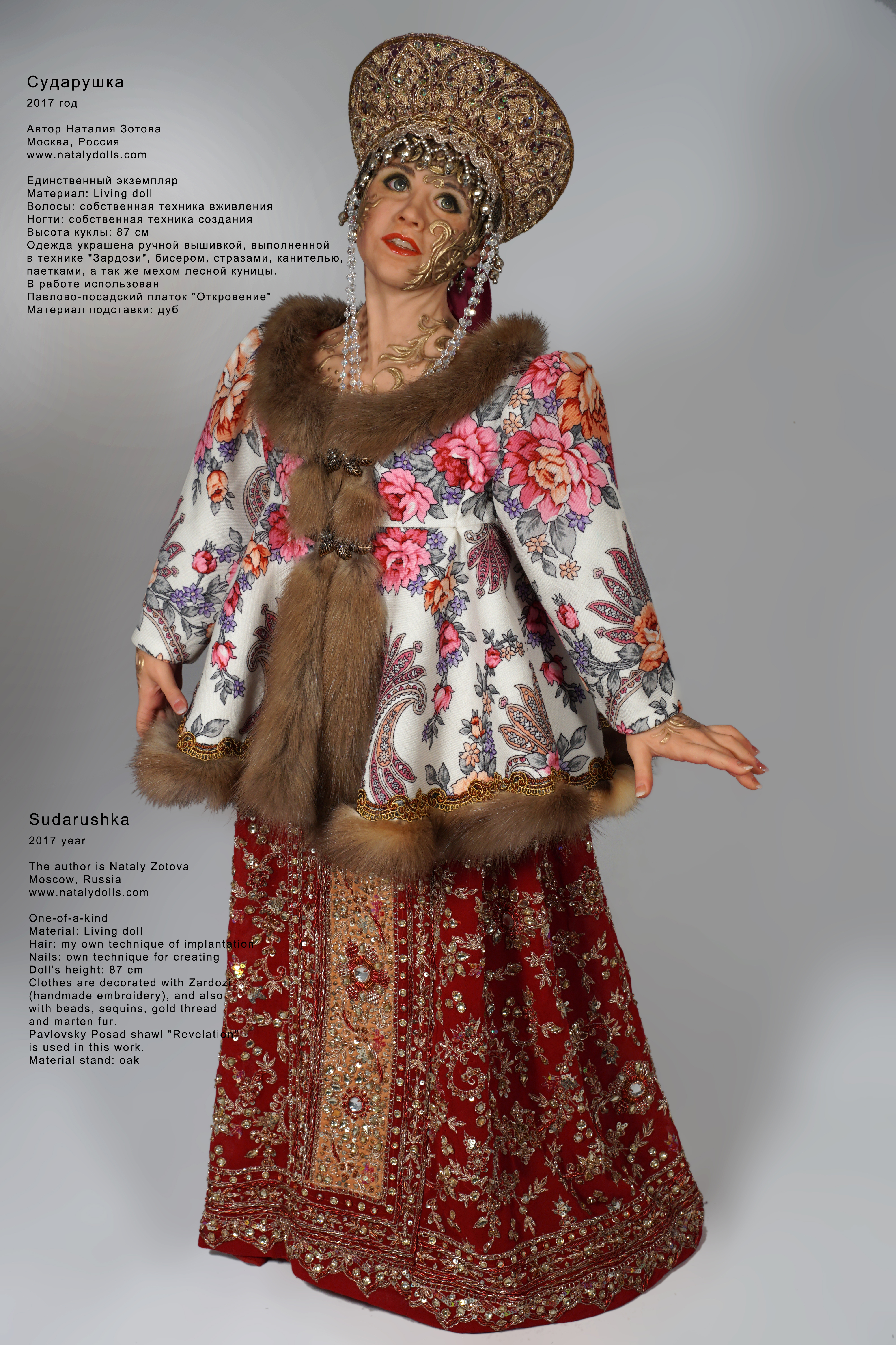 Наталия Зотова создала и успешно применяет собственную уникальную технику вживления волос в полимерную глину Living Doll. И собственную технику создания реалистичных ногтей — посмотреть на примере куклы «Хохлома».