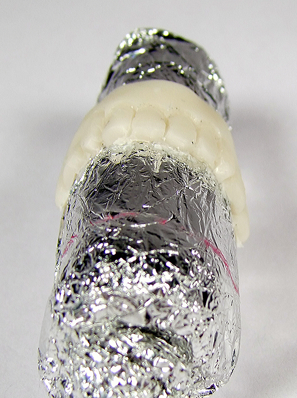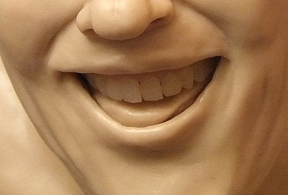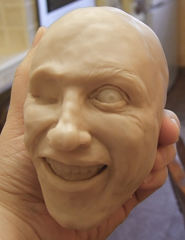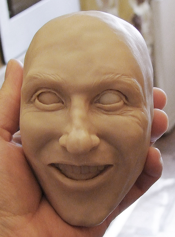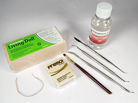 ГоловаТеперь перехожу к "мягким тканям" головы. Для работы над первым этапом по созданию куклы мне понадобятся: ![]() Как бы не была велика ваша фантазия, всегда есть опасность «синдрома замыленности глаза». Наверное многие из читателей уже замечали, что некоторые авторы, сосредотачиваясь на абстрактных образах, начинают повторяться. Сперва отдельными чертами, затем полностью повторяя лица от работы к работе. В какой-то момент, зритель начинает замечать сходство черт таких кукол с чертами ... самого автора :) Есть замечательное средство от такой напасти — брать за основу не выдуманное лицо, а лицо реально существующего человека. Для этого, вы должны постоянно собирать фотографии людей. Увидели в интернете колоритную физиономию — сразу в свою копилку. Пройдет какое-то время и именно эта физиономия отлично подойдет для новой работы :) Пластик необходимо ТЩАТЕЛЬНО размять! Постепенно облепляю пластиковыми лепешками (толщиной около 3-4мм) весь «череп». ![]() Понемногу добавляя пластик, я формирую сначала половину лица, стараясь добиться задуманного выражения... ![]() ... а потом долепливаю вторую половину. ![]() В глазницы вставляю Premo (это будущие белки глаз) и обрамляю глаза ресницами. Для этого от ленты ресниц отрезаю кусочек нужного размера, прикладываю к веку (слегка вдавливая), а сверху закрываю тоненькой «колбаской» из пластика. Слепив голову, я поняла, что «промахнулась» с верхней челюстью. Она получилась слишком широкая и выглядит неестественно. Визуально оценив нужный размер челюсти, я сформировала из фольги основу с нужным радиусом и при помощи инструментов слепила новую десну с зубами из Premo. ![]() Поместив заготовку из фольги с новыми зубами в духовку, произвела полноценный обжиг пластика (30 минут при температуре 115°С). ![]() Раскурочив почти весь рот, заменила старую десну с зубами на новую. ![]() Теперь результат меня устраивает!