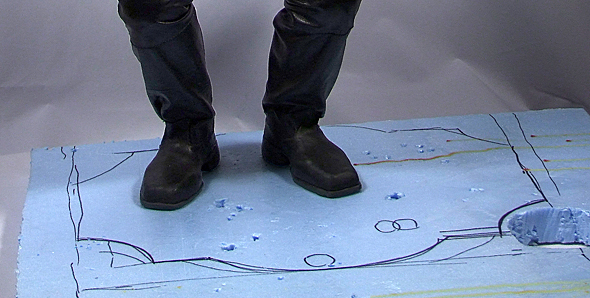 ПодставкаВ процессе работы над позой и во время сборки куклы я пользуюсь временной подставкой из вспененного материала Пеноплекс. ![]() Пеноплекс - материал плотный и прочный, но при этом легко протыкается проволокой, выходящей из подошвы куклы. Это позволяет сформировать общую композицию, прикинуть размеры и форму окончательной подставки. ![]() В итоге готовится чертеж нужной мне подставки, который отправляется в мебельную мастерскую. Подставки могут изготавливаться из различных пород дерева, тонированные или натурального цвета, с отделкой тканью. Все зависит от замысла. В данном случае, подставка стилизована под каменный пол при помощи пасты для лепки на основе белой глины Jovi. ![]() А затем расписана акриловыми красками. ![]() Для декорирования части монет, изъятых лилипутами из карманов Гулливера, так же использована золотая поталь.