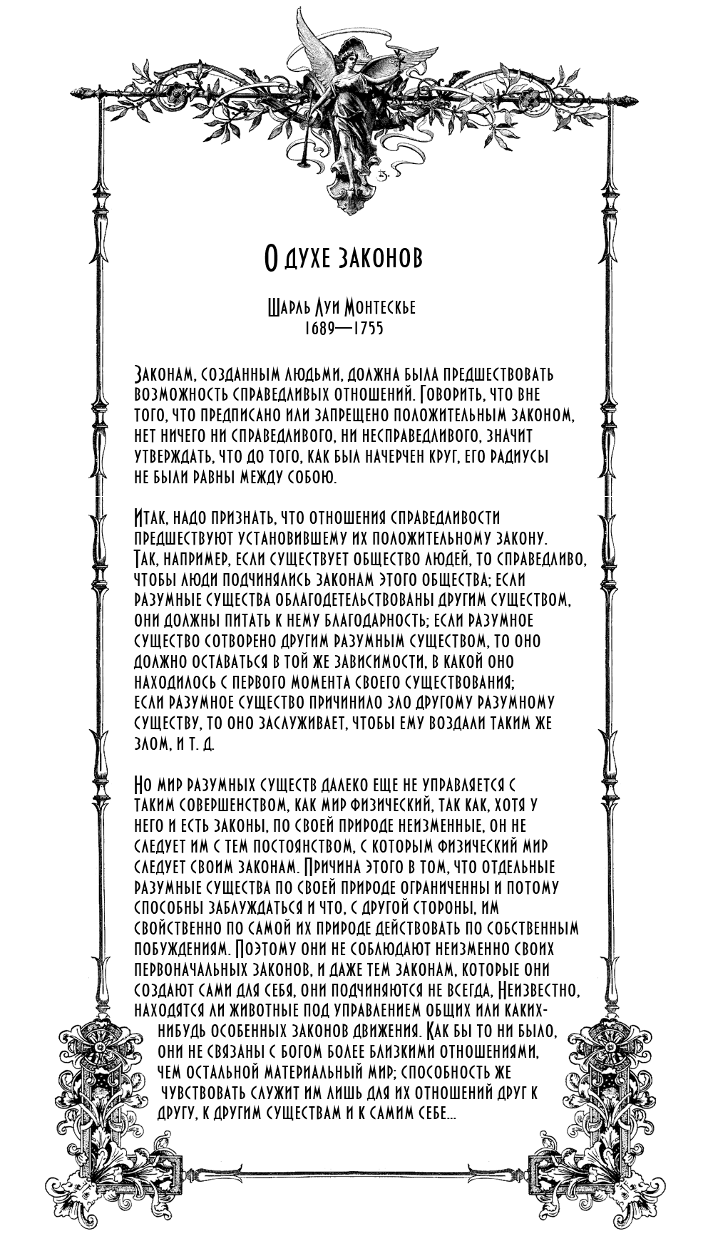Мишель Монтень, "Опыты"Если только мне это удастся, я постараюсь, чтобы смерть моя не сказала ничего такого, чего ранее не сказала моя жизнь. Ежи Лец, "Непричесанные мысли"Как справедливее всего судить о каком-либо государстве? Проще всего – на основе его суда. Гавриил Державин, "Властителям и судиям"Ваш долг есть: сохранять законы, Ваш долг: спасать от бед невинных, Шарль Луи Монтескье,